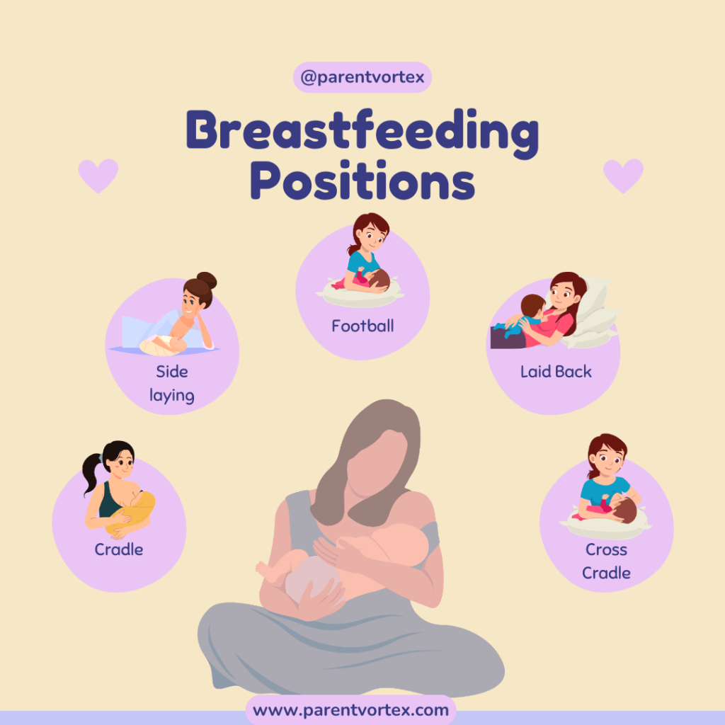 Finding the right breastfeeding position can make a significant difference in your breastfeeding experience. The right position can help ensure a good latch, improve milk transfer, and reduce discomfort for both you and your baby. Here are five common breastfeeding positions, along with instructions and tips to help you get started.